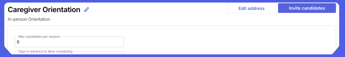Onboarding just got easier. Schedule recurring group orientations with built-in reminders, instructions, and simple rescheduling options. This feature helps reduce no-shows and gets caregivers into the field faster.